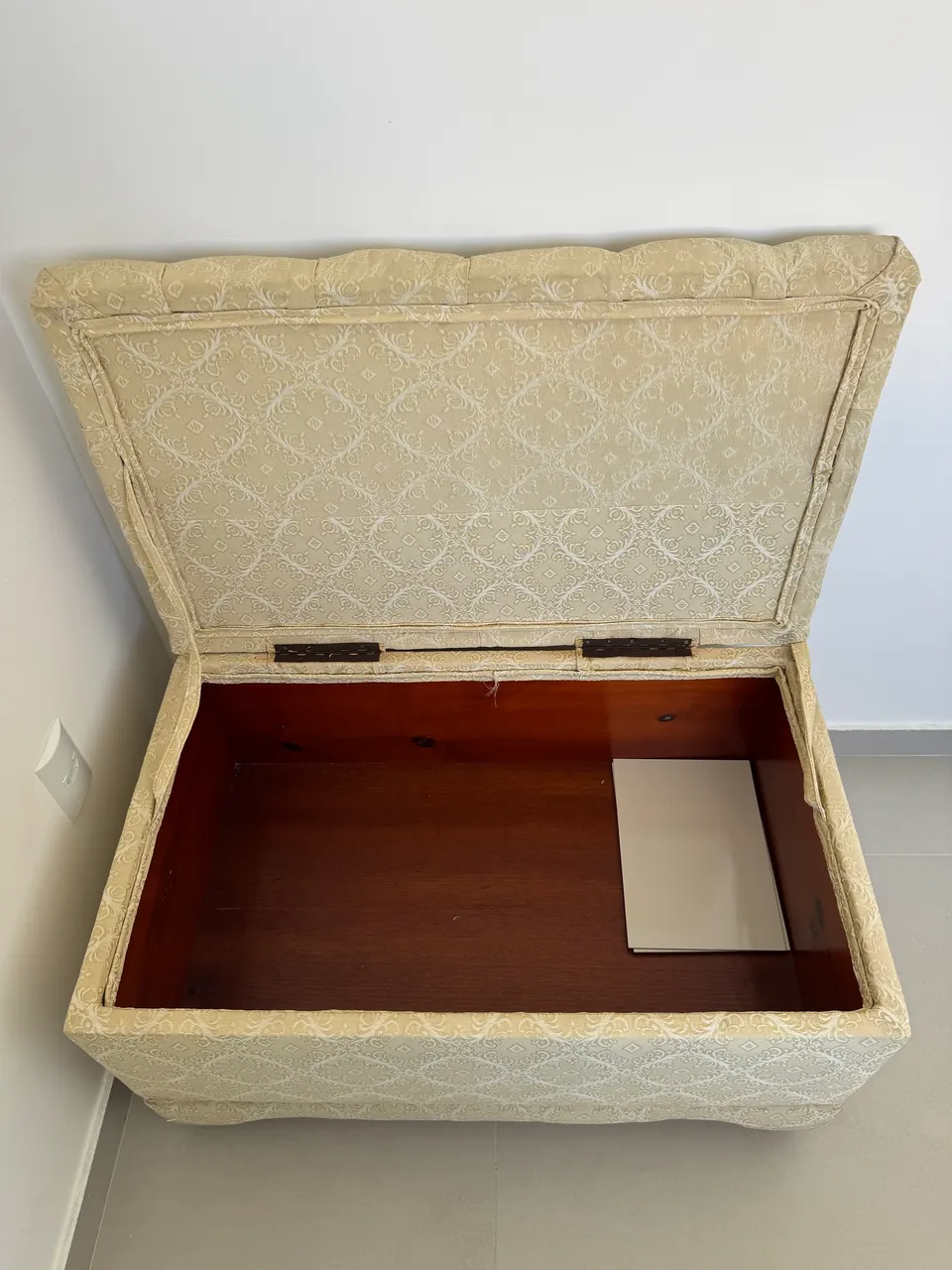 Lindo baú com rodinhas, perfeito para organizar seus pertences com elegância. Ideal para guardar roupas de cama, brinquedos ou o que você desejar. Design charmoso e funcional para qualquer ambiente.