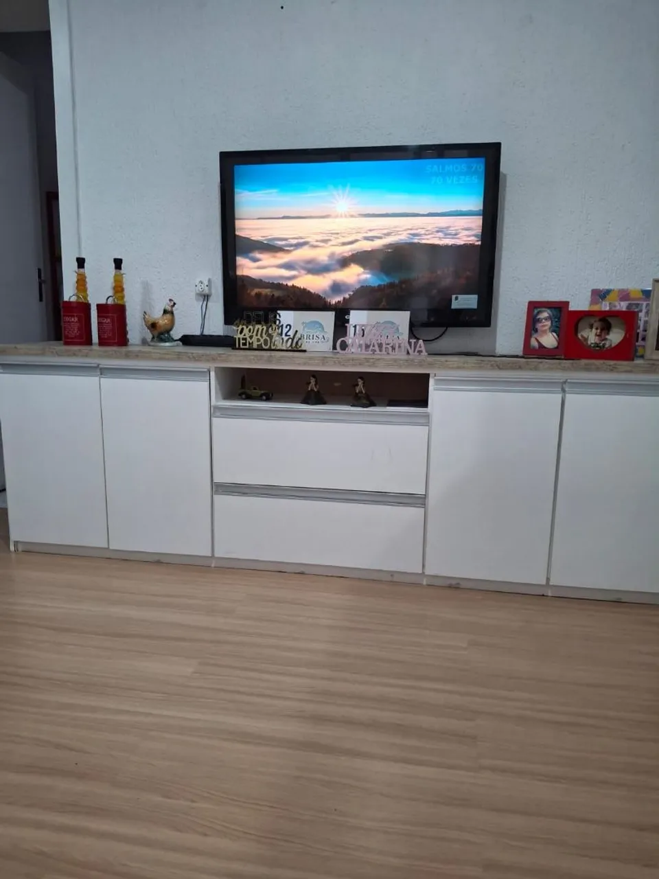 Balcão moderno e espaçoso, ideal para organizar sua sala de estar. Design elegante e funcional, perfeito para acomodar sua TV e outros objetos decorativos. Um balcão de 2 metros de comprimento por 40 cm de largura todo MDF já vai com panel esta super novo 996 848139 tenho frente ser pressizar