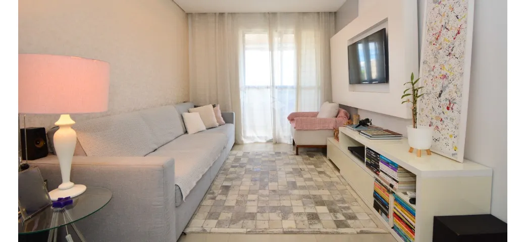 Painel em madeira MDF laqueado em branco e detalhes laterais em cinza. Medidas: estrutura branca com 2,15m de comprimento e nicho medindo 1,00m x 0,75m (para pendurar tv)