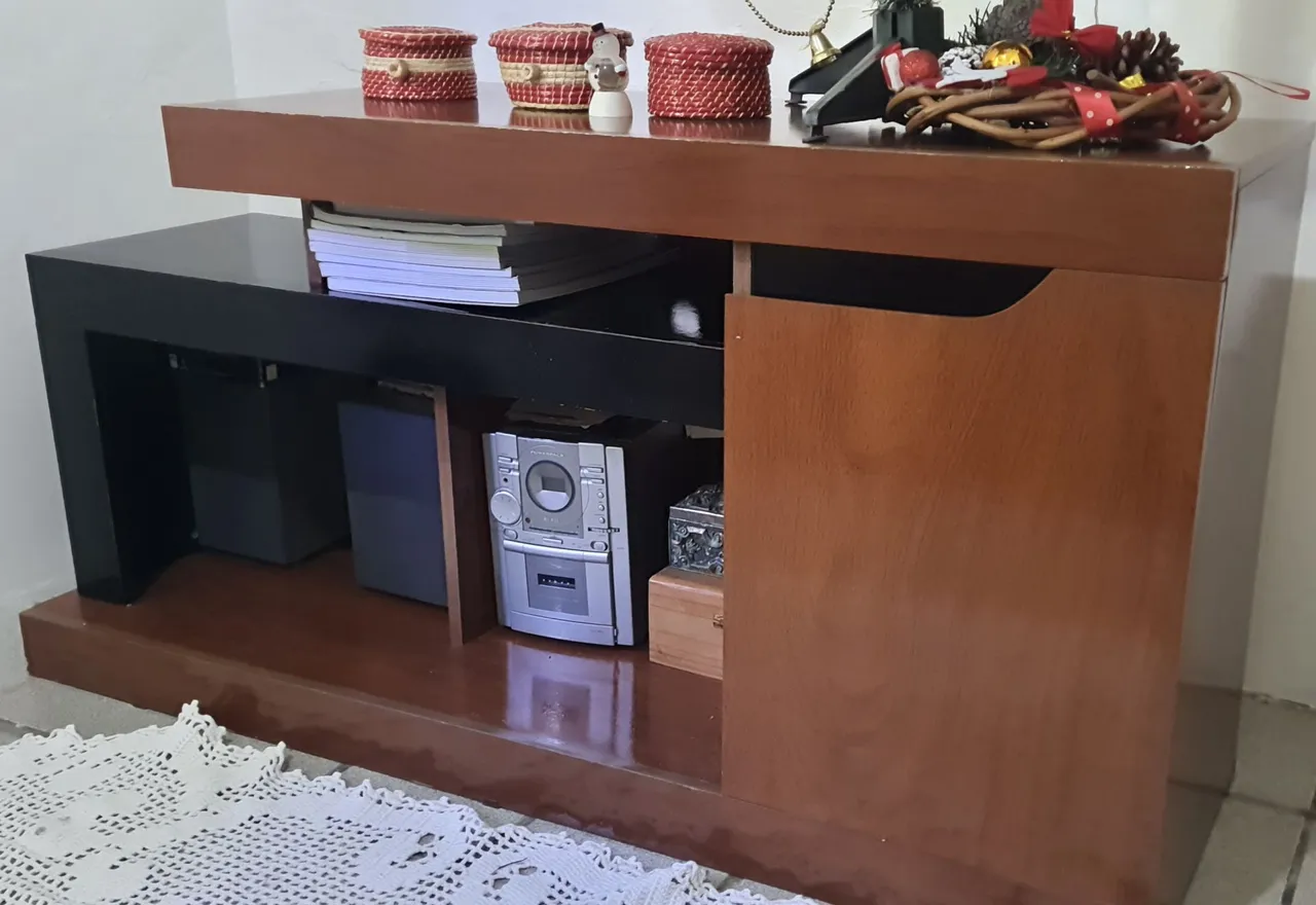 Rack 120 x 0,90 m em bom estado, perfeito para organizar sua sala com elegância e funcionalidade. Troco por : Arara de madeira pequena para quarto, carpete.