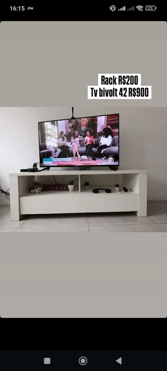 Rack moderno e elegante, perfeito para sua sala de estar. Design clean e funcional, ideal para organizar sua TV e seus aparelhos eletrônicos.
