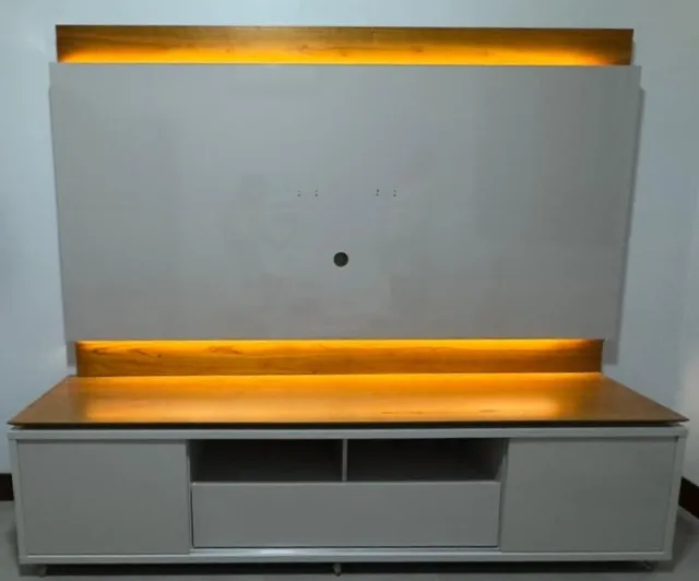 Transforme sua sala com este rack moderno e elegante com painel integrado. O móvel tem pouco tempo de uso, em perfeito estado. Possui led, gaveta, prateleira e rodinhas.