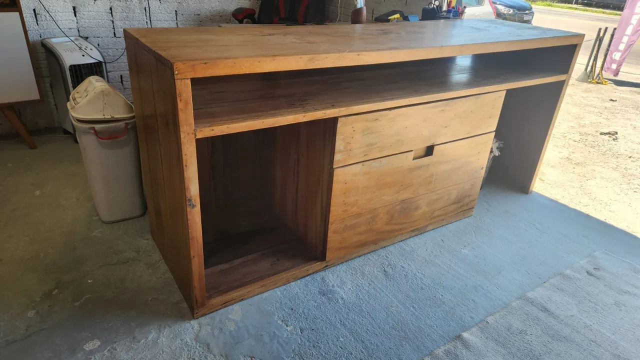 Rack de madeira rústico (Usado em bom estado) Preço 2200,00 em até 10x no cartão . Altura 82 cm Largura 185.cm Profundidade 55 cm Fazemos entrega ? pé
