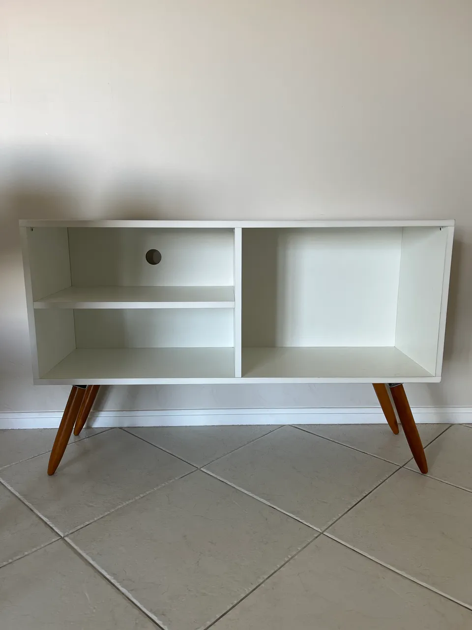 Rack para TV em MDF e pés de madeira em perfeitas condições. Dimensões: Altura 75 cm Comprimento 115 cm Profundidade 35 cm