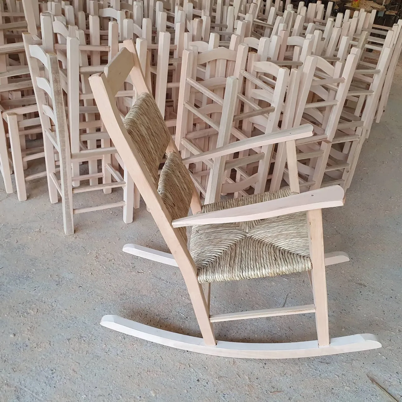 Desfrute de momentos relaxantes com esta charmosa cadeira de balanço. Feita com palha natural, ela combina conforto e estilo rústico para o seu lar. Perfeita para relaxar e aproveitar o tempo livre.