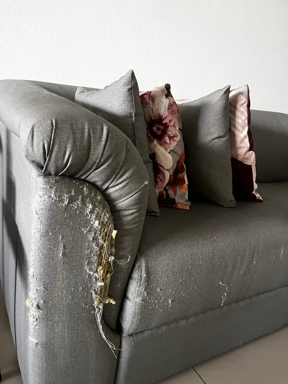 Os sofás apresentam arranhados de gato nas laterais, caracterizando desgaste estético. Ideal para quem deseja reformar, revestir ou utilizar com capas.