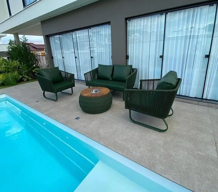 Conjunto de móveis para área externa, perfeito para relaxar e aproveitar o sol. Composto por sofá de 2 ou 3 lugares, duas poltronas e mesa de centro. Ideal para quem busca conforto e estilo para o seu espaço ao ar livre. Peças em ótimo estado, com estrutura resistente e tecido de alta qualidade. Aproveite essa oportunidade! Entre em contato para mais informações. Della fibras móveis 41 ... ver número Andressa ou Airton