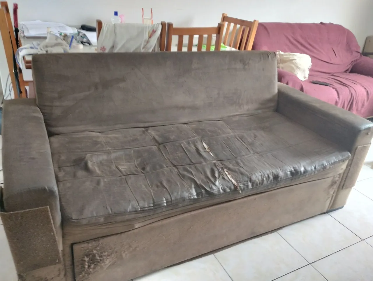 Sofá cama Bom estado ,algumas coisas ,mas só colocar uma manta , ou uma capa Doa se Retirar no local .