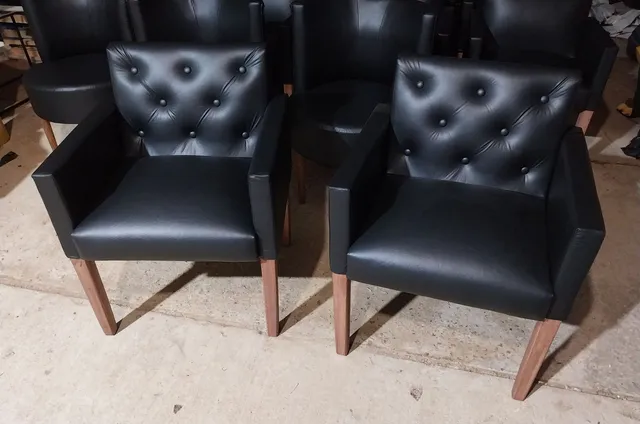 POLTRONAS COM CAPTONES E PÉS EM EUCALIPTO FIXOS NA ESTRUTURA DOS BRAÇOS SUPORTAM ATÉ 150 KILOS TRANQUILO