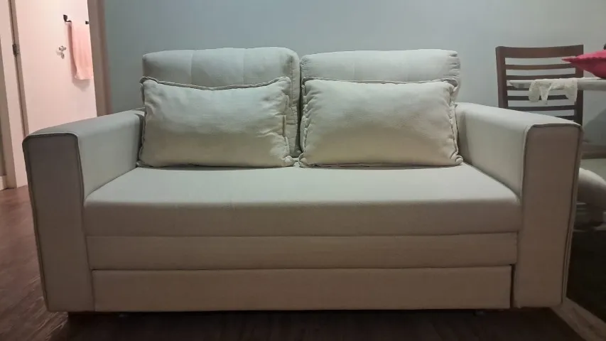 Sofá dois lugares Cannes com tecido em linho na cor clara. Comprado em Fevereiro de 2025 com impermeabilização. Possui nota fiscal.