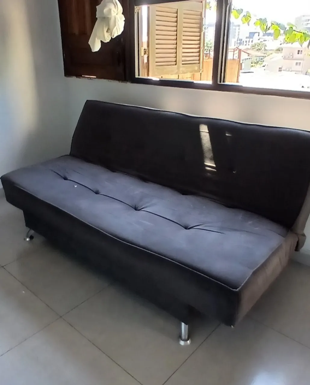 Vendo sofá-cama de 3 lugares na cor grafite, modelo moderno com pés cromados, em ótimo estado de conservação e com estrutura firme. O móvel funciona perfeitamente para sentar ou dormir, apresentando apenas um pequeno furo no assento que pode ser facilmente disfarçado com uma manta. Estou vendendo por apenas R$ 300 para desapegar logo, com ***retirada por conta do comprador*** no bairro Trindade. Aproveite essa oportunidade de levar um móvel funcional e elegante por um preço justo!