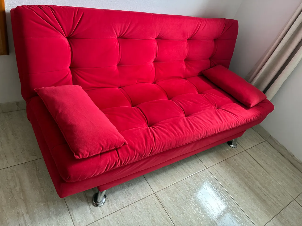 PAGAMENTO APENAS VIA PIX. Apresentamos o Sofá Cama Linoforte, perfeito para otimizar seu espaço com elegância e conforto. Com design moderno e cor vibrante, este sofá se transforma em uma cama aconchegante, ideal para receber visitas ou relaxar. Uma peça versátil que une funcionalidade e estilo para sua casa!