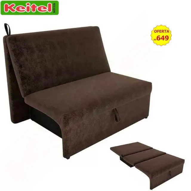 Sofá Cama Malu Tecido Cor Marrom Escuro R$649,00.