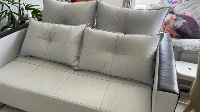 O sofá não cabe no meu espaço, por isso, nunca foi usado. Está embalado para não pegar poeira. Com nota fiscal.