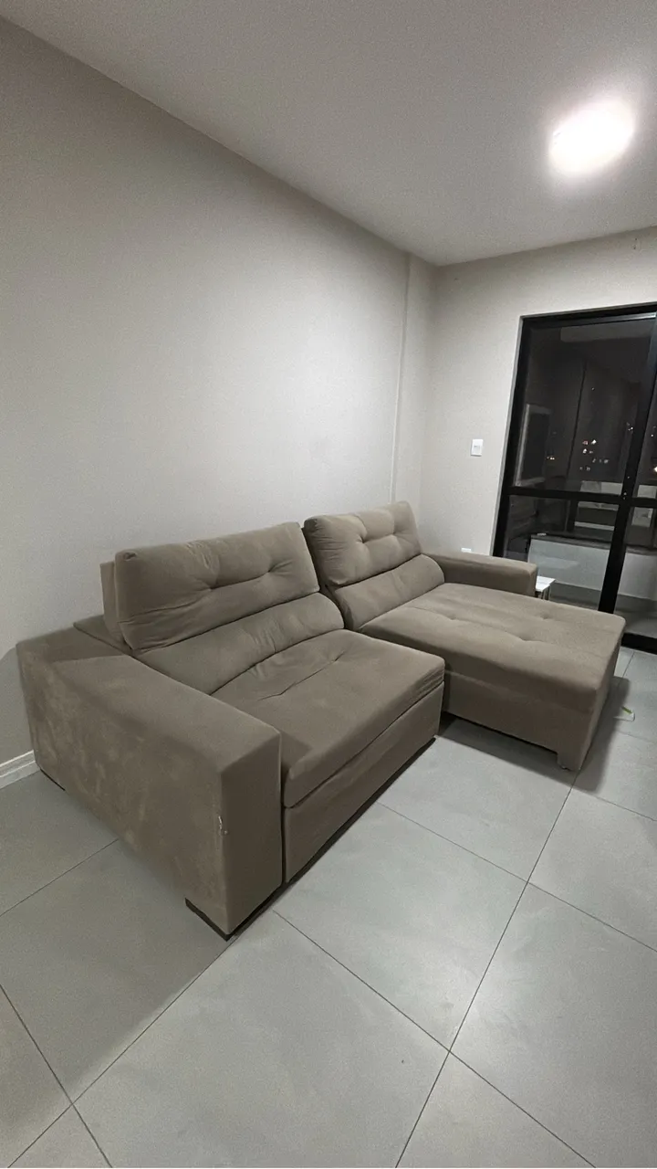 Aconchego e conforto para sua sala! Este sofá é perfeito para relaxar e receber amigos. Design moderno e elegante que combina com qualquer ambiente. Sofá retrátil com marcas de uso e marcas de unhas de gato em um dos cantos, uma das partes do tecido desprendeu como mostra na foto, porém só é perceptível quando a parte retrátil está aberta, porém é algo de facilmente consertar com um grampeador de pressão. Vendendo barato pois preciso desocupar o imóvel.