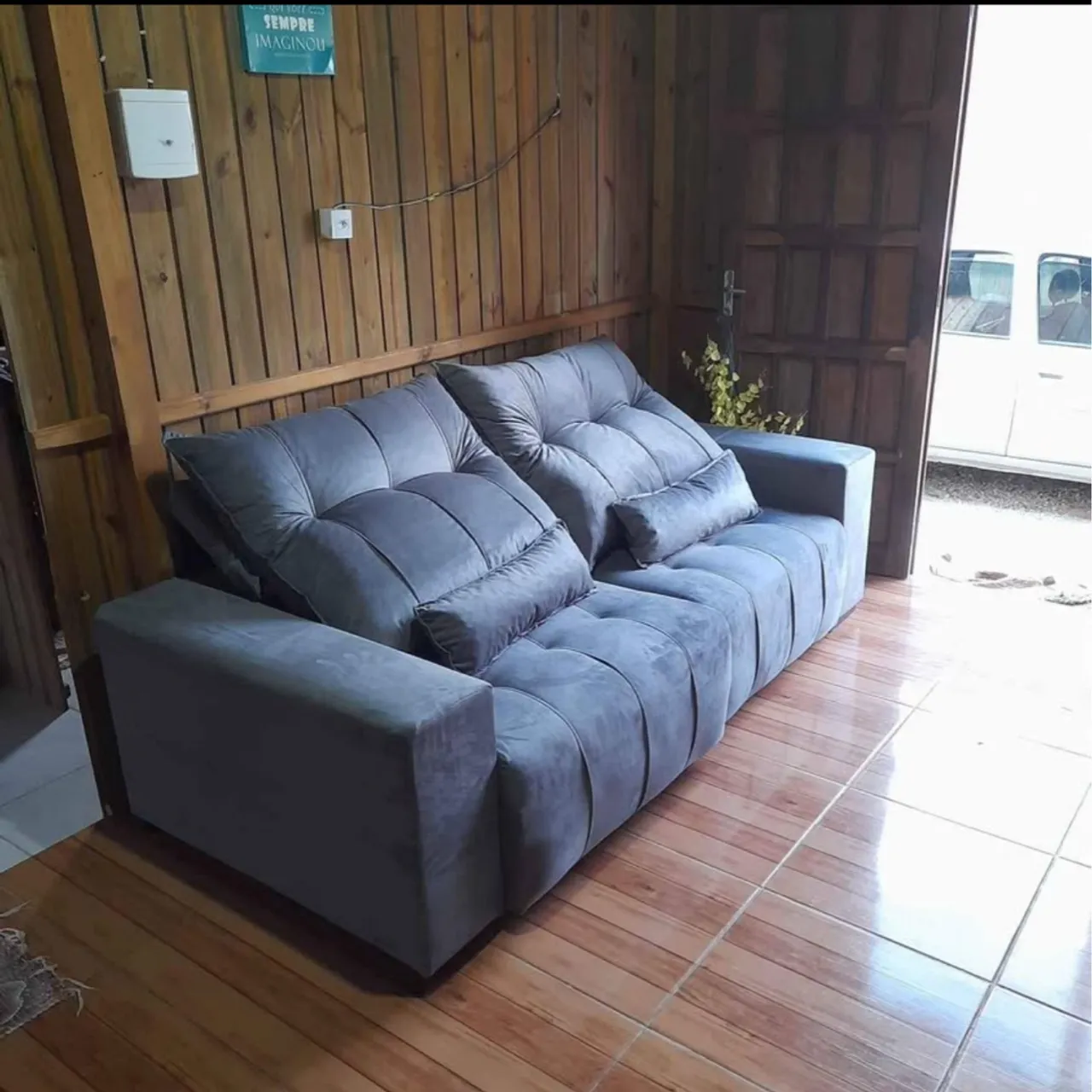 Sofá de canto em tecido suede, confortável e moderno, ideal para sua sala de estar. Design elegante e estrutura resistente. Perfeito para relaxar e receber amigos e familiares.