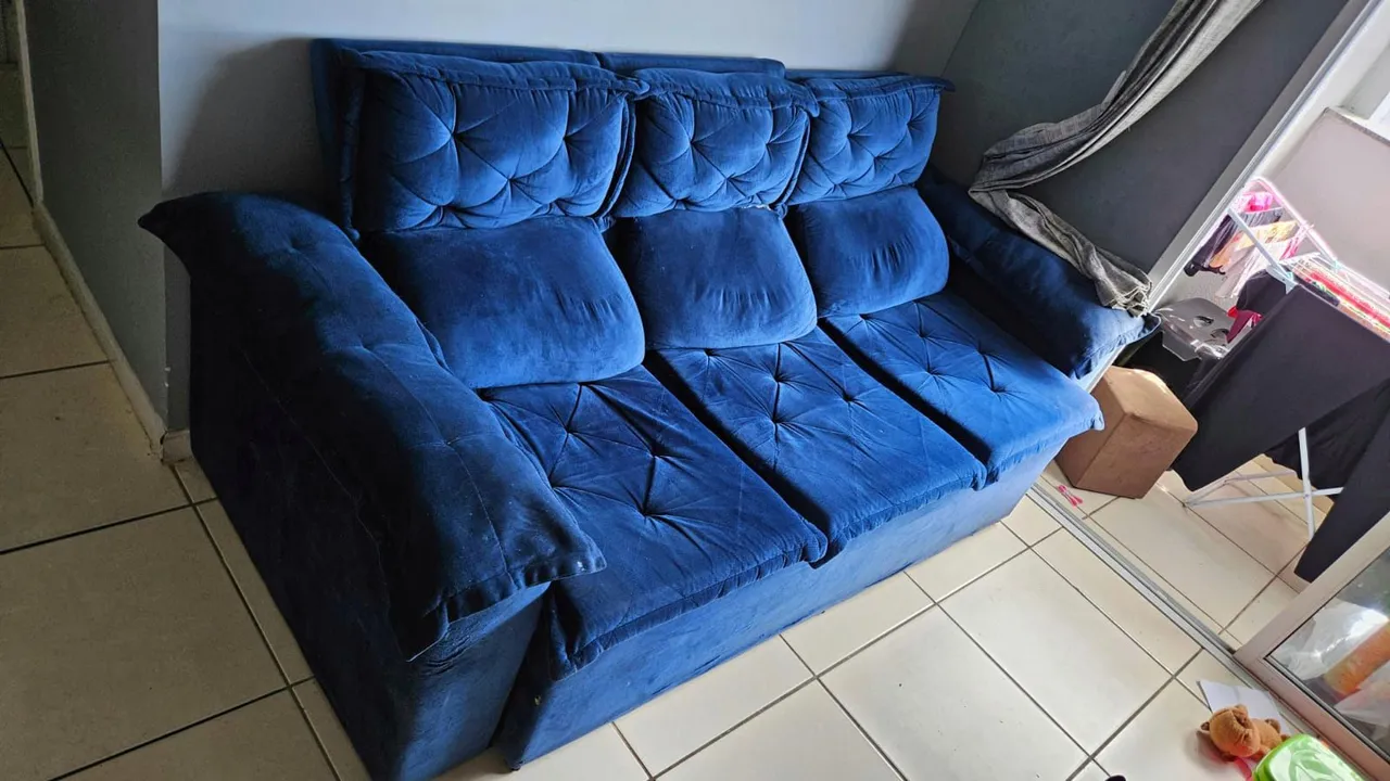 Medindo 2 metros, com alguns detalhes de uso, porém muito bom e confortável. Pra mais informações entre em contato.