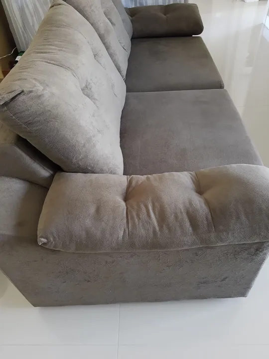 Sofá marrom com chaise de 3 a 4 lugares, em excelente estado de conservação, tamanho: 2 mtos cumprimento x 95 profundidade e altura 90 cm, não entrego.
