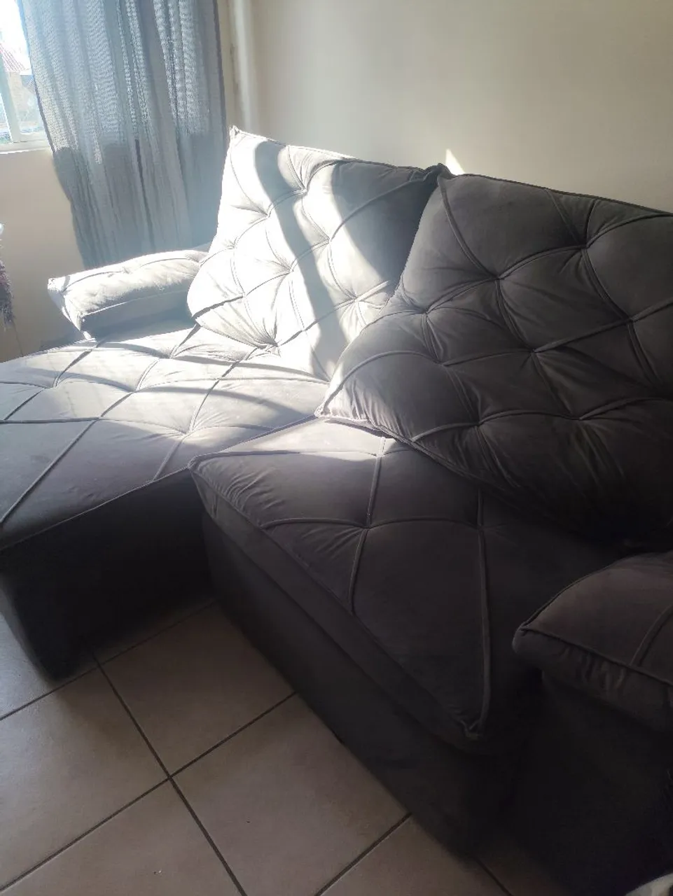 Aproveite o conforto e a praticidade deste sofá retrátil e encosto reclinável , de 3 lugares, ideal para relaxar e receber visitas. Pouco usado, em excelente estado, perfeito para sua sala! Ganha de brinde , capa de proteção .