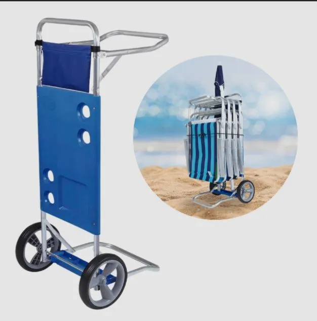 Leve tudo o que você precisa para a praia com este carrinho prático e resistente! Perfeito para transportar cooler, cadeiras, guarda-sol e muito mais. Desfrute de um dia de sol com conforto e praticidade. Usado uma vez