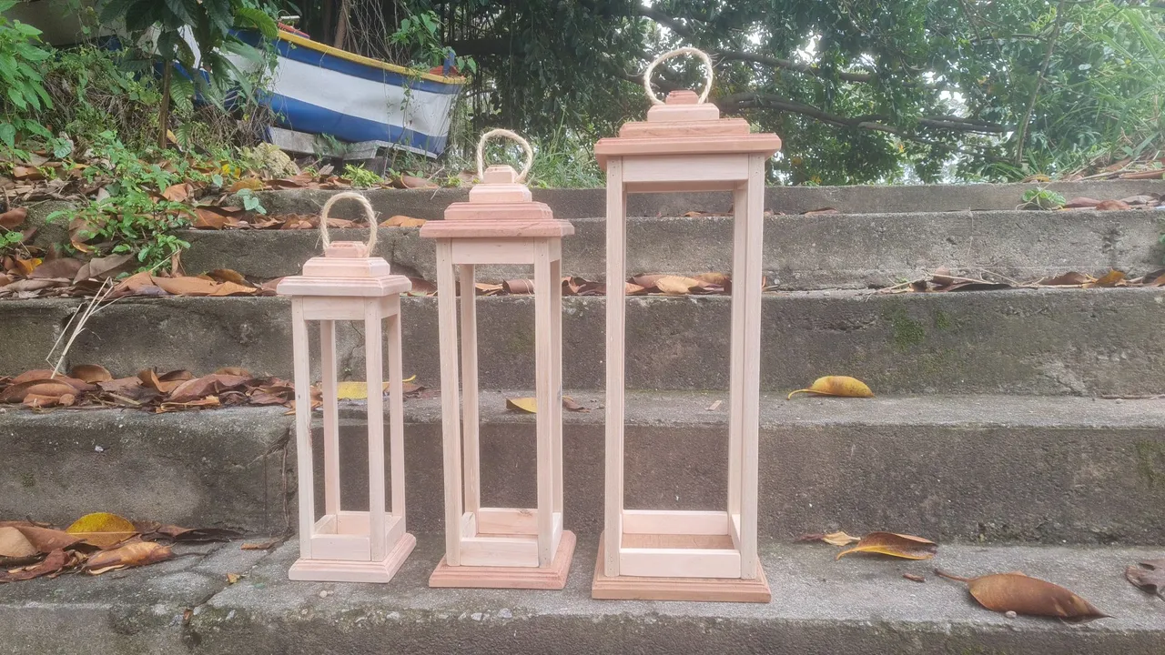 Lindas lanternas de madeira artesanais para decorar seu ambiente. Perfeitas para criar uma atmosfera aconchegante e charmosa em sua casa ou jardim. Medidas maior com 70cm altura 25cm largura e profundidade. Média 60 cm de altura 20cm de largura e profundidade. Menor 50 cm de altura 15cm largura e profundidade . Todas em madeira.