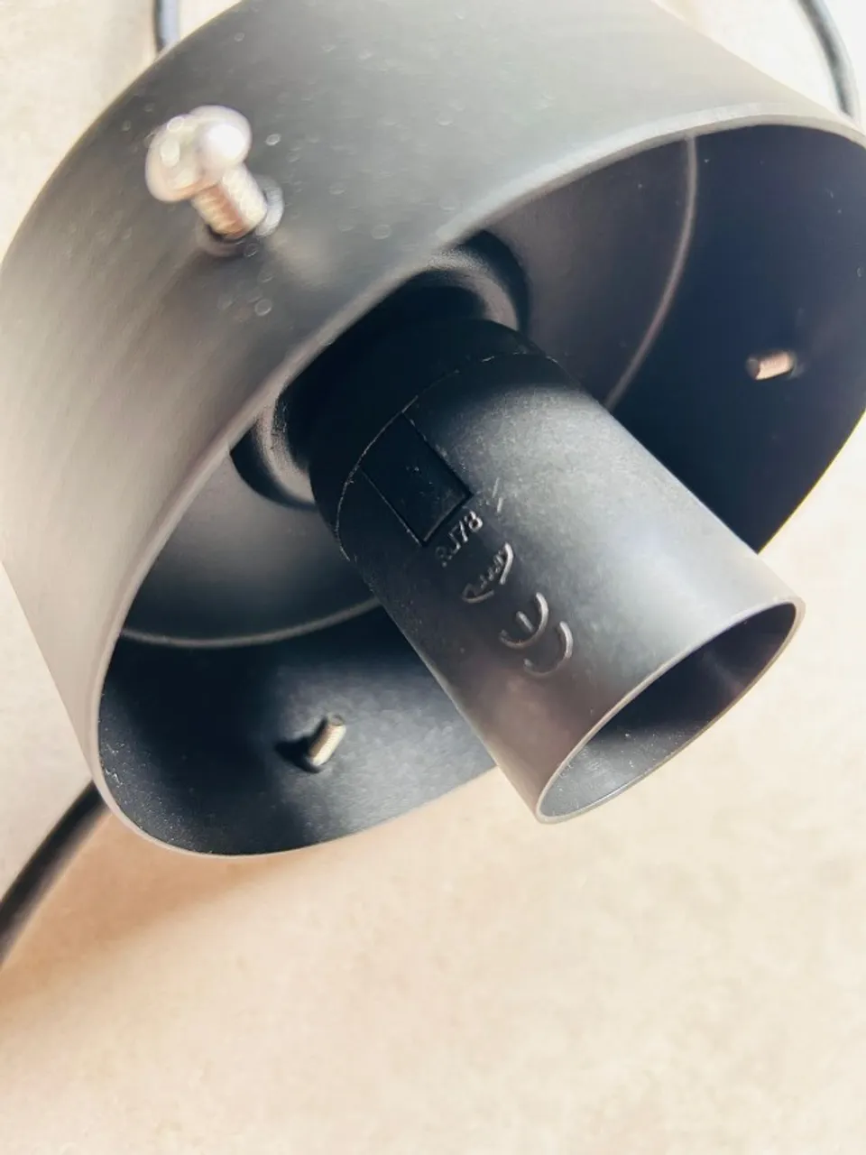 Cabo, base e bocal para lustre pendente. Base em metal preto fosco. Diâmetro da base 11cm, bocal tipo E27 (lâmpada comum). Usado em ótimo estado.