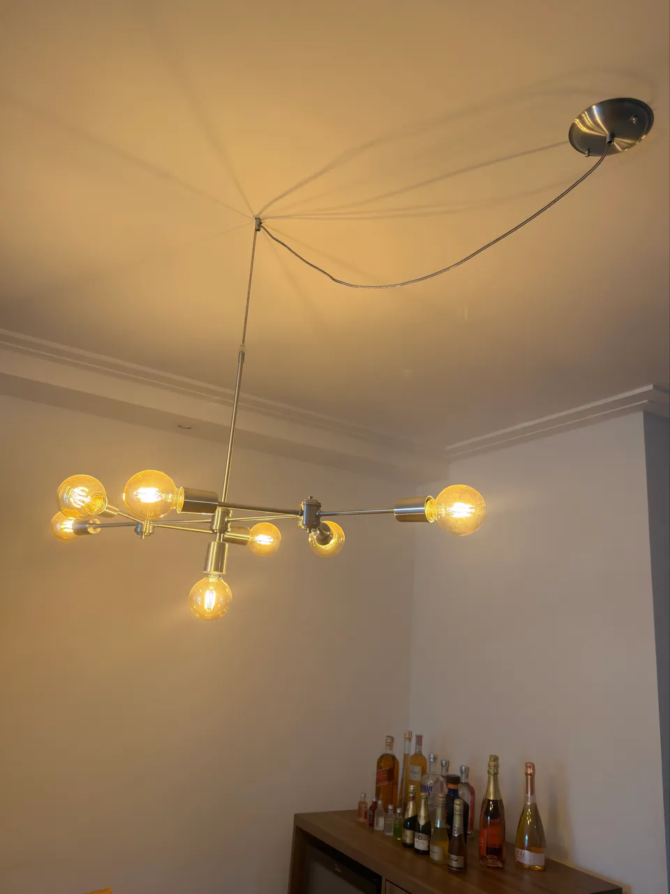 Pendente quase novo pouco usado, com todas as lâmpadas funcionando. Comprado em loja de luxo.
