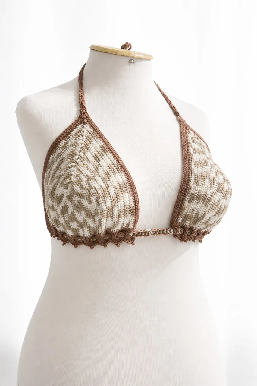 Charmoso biquíni de crochê, perfeito para um visual praiano elegante e confortável.