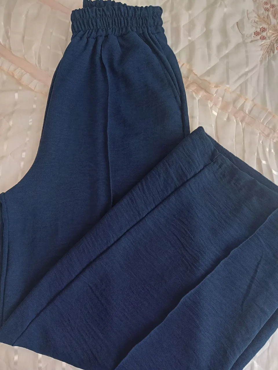 Calça azul de tecido leve e confortável, perfeita para diversas ocasiões. Design moderno e elegante, ideal para quem busca estilo e praticidade.Tecido duna ,não amassa.Tamanho G.