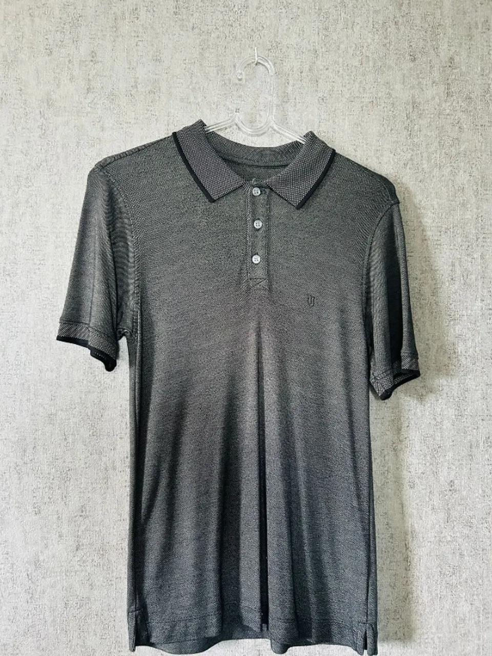 Camisa Polo masculina, marca Individual, cor cinza escuro, tamanho PP slim fit. Tecido: 84% viscose 16% poliester. Usada em bom estado. Medidas aproximadas nas imagens.