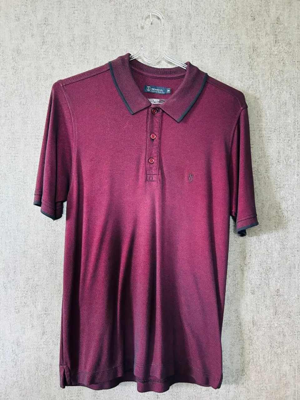 Camisa Polo masculina, marca Individual, cor vinho, tamanho PP slim fit. Tecido: 84% viscose 16% poliester. Usada em bom estado. Medidas aproximadas nas imagens.