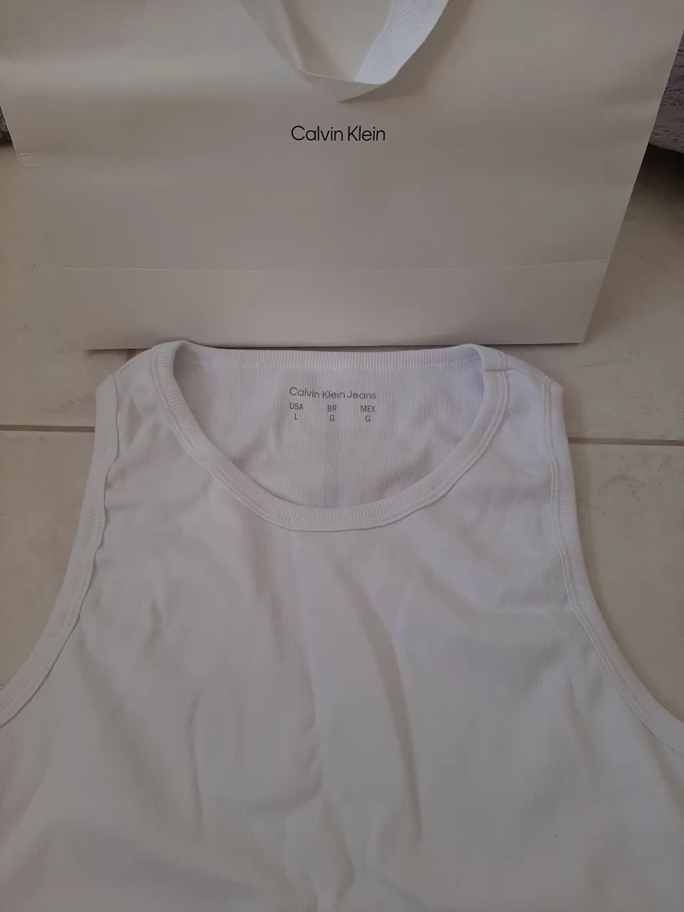 Vendo regata Calvin Klein Jeans, tamanho G, nova, original. Ganhei de presente, não serviu e perdi o prazo de troca.