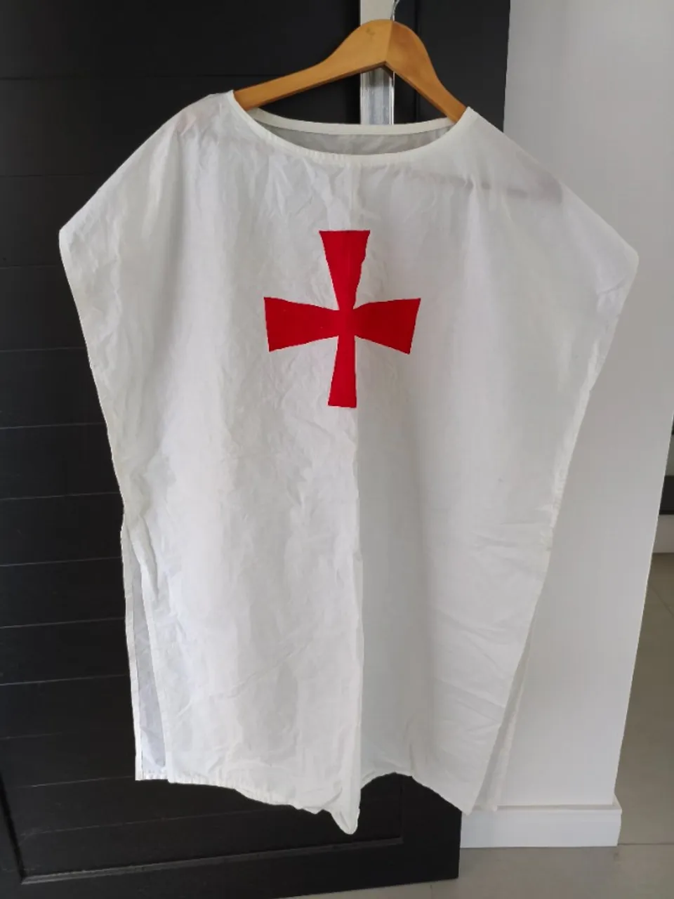 Túnica branca com cruz vermelha, ideal para fantasias e eventos temáticos. Tecido em algodão, firme, leve e confortável. Medieval. Acompanha cinto.