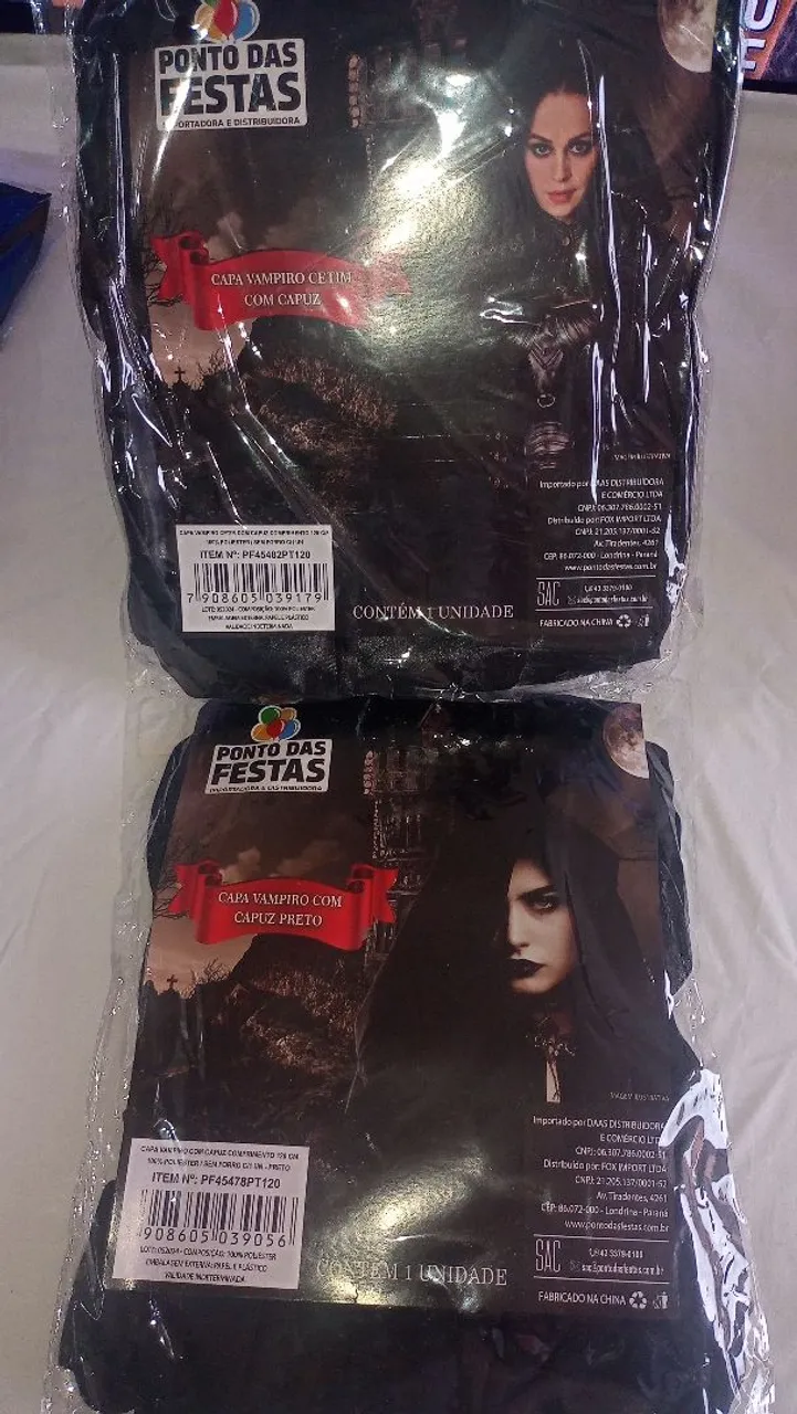 Mergulhe no mundo da fantasia com esta capa de vampiro elegante e misteriosa. Perfeita para festas a fantasia, eventos temáticos ou para criar um visual único e assustador. Feita com material de qualidade, esta capa garante conforto e durabilidade. O capuz adiciona um toque dramático e enigmático, complementando perfeitamente o seu traje de vampiro.