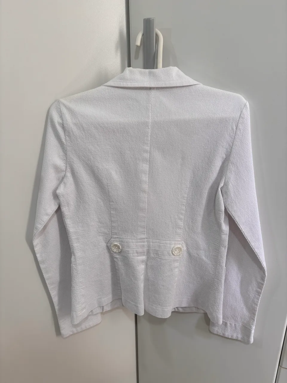 Casaco branco elegante, perfeito para diversas ocasiões. Confeccionado com tecido de alta qualidade e design moderno, ideal para um look sofisticado e confortável.