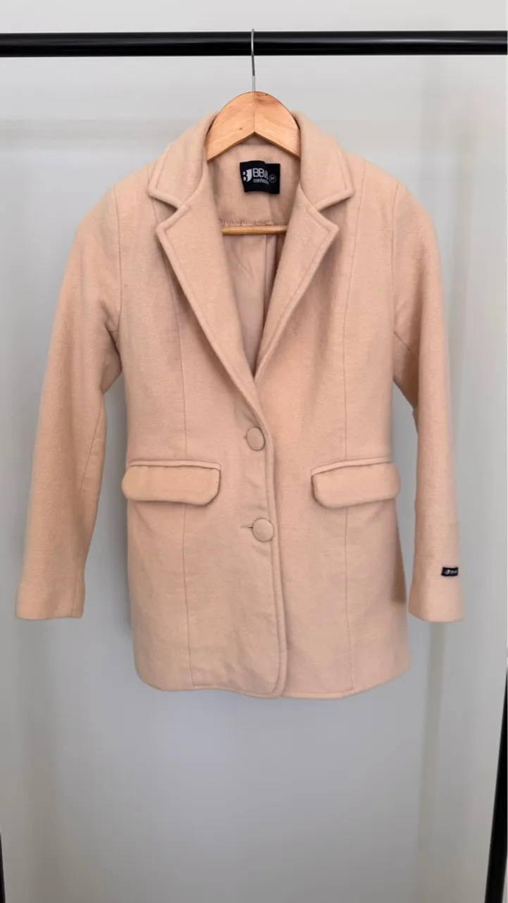 casaco de lã de verdade, não pinica e é super quentinho. cor bege claro, comprimento longo. comprado de produção no rio grande do sul, novo na loja está r$ 900.