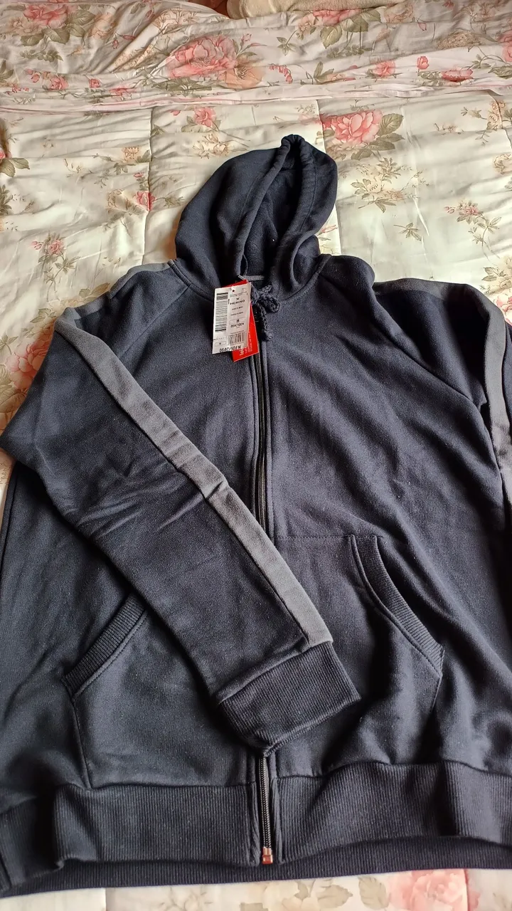 Casaco de moletom Hering com capuz, perfeito para o dia a dia! Design moderno e confortável,com fecho/ziper, ideal para diversas ocasiões. Detalhes em cinza nas mangas e bolsos laterais.