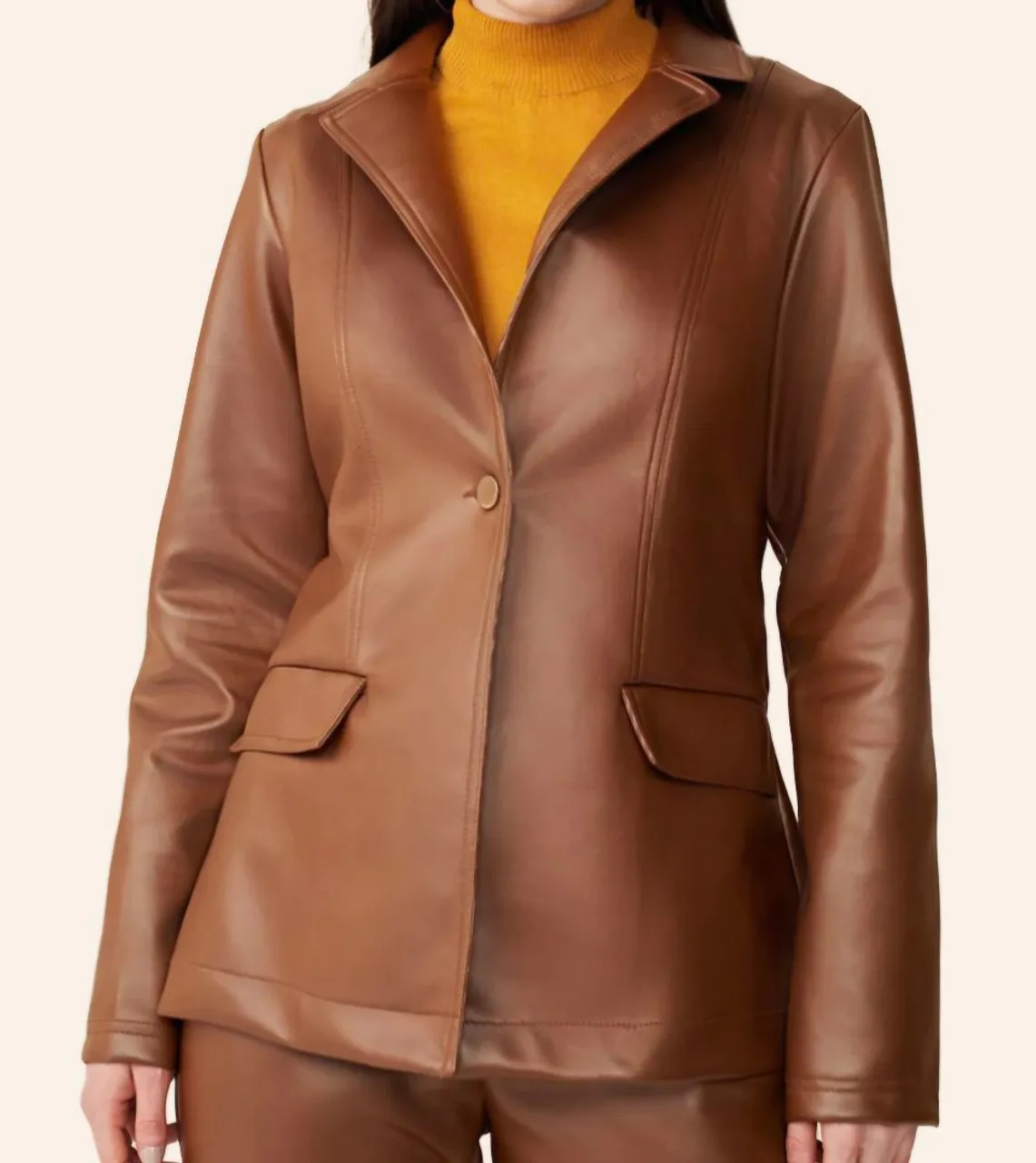 Conjunto Maria Valentina! Marrom! Couro vegetal! Calça Boot Cut Cós Intermediário Com Recorte + Blazer alongado!!! Nunca usado, ficou grande p mim!