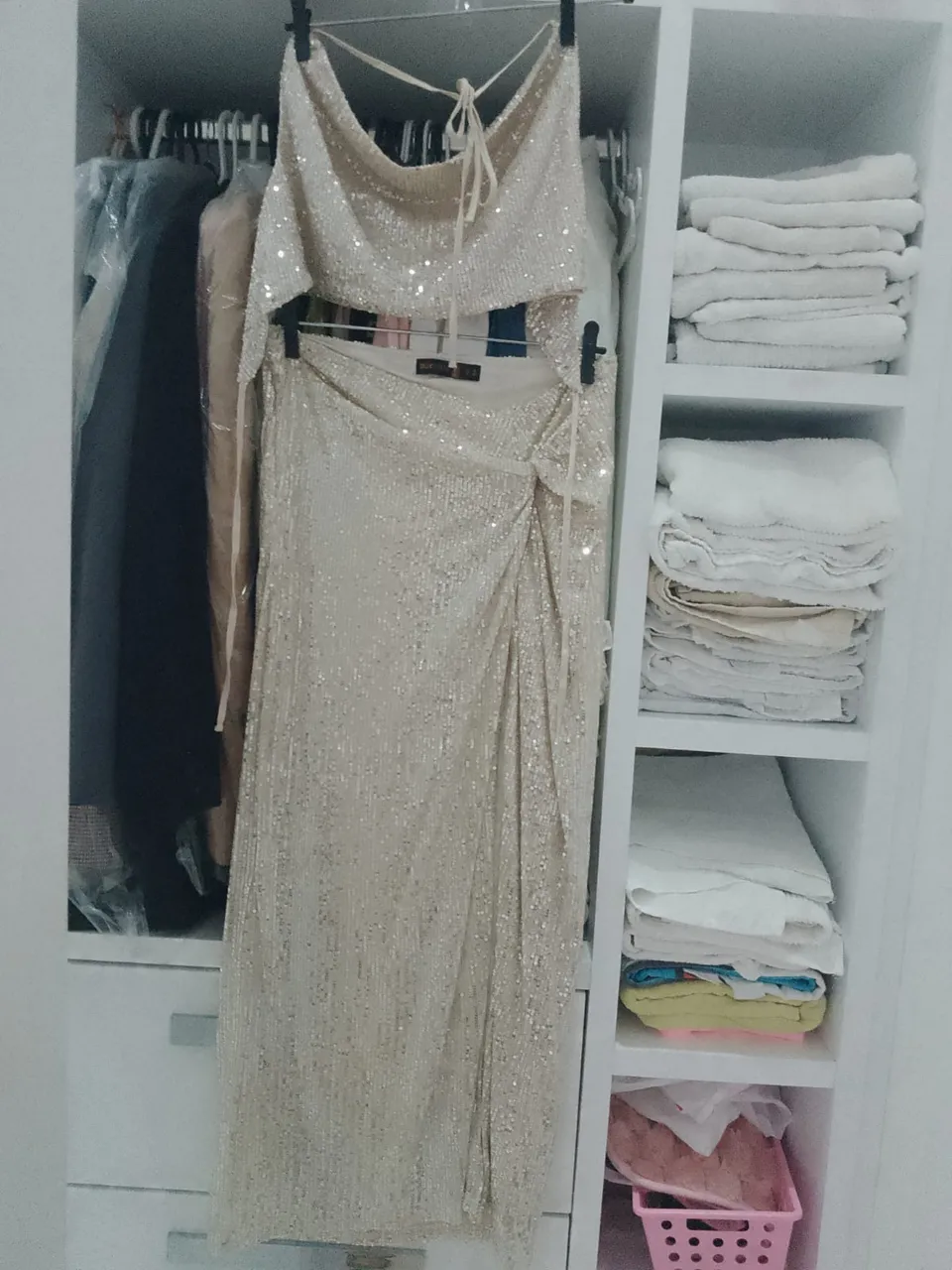 Deslumbre na virada com este conjunto elegante e cheio de brilho! Perfeito para celebrar momentos especiais, este vestido irá te fazer brilhar em qualquer evento.