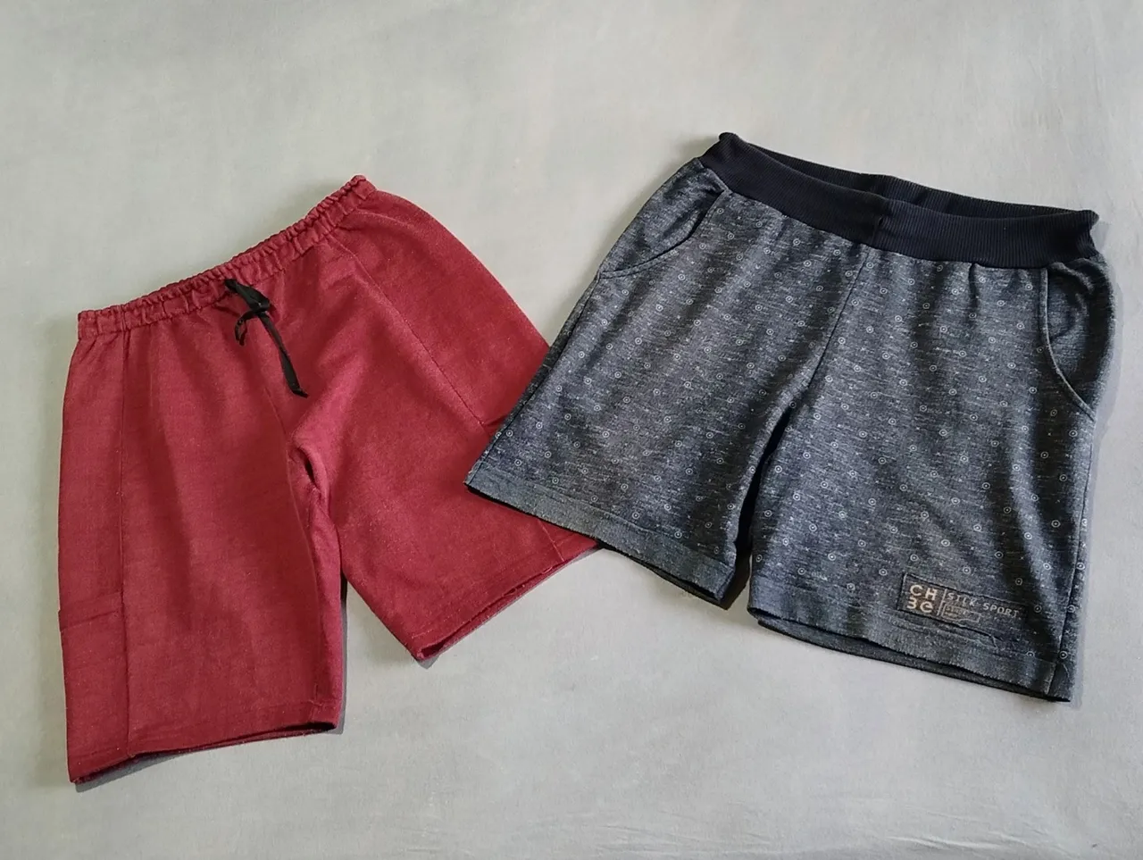 Duas bermudas masculina de moletom, uma bordô e outra cinza com preto. Tamanho: M. R$ 50,00 as duas.