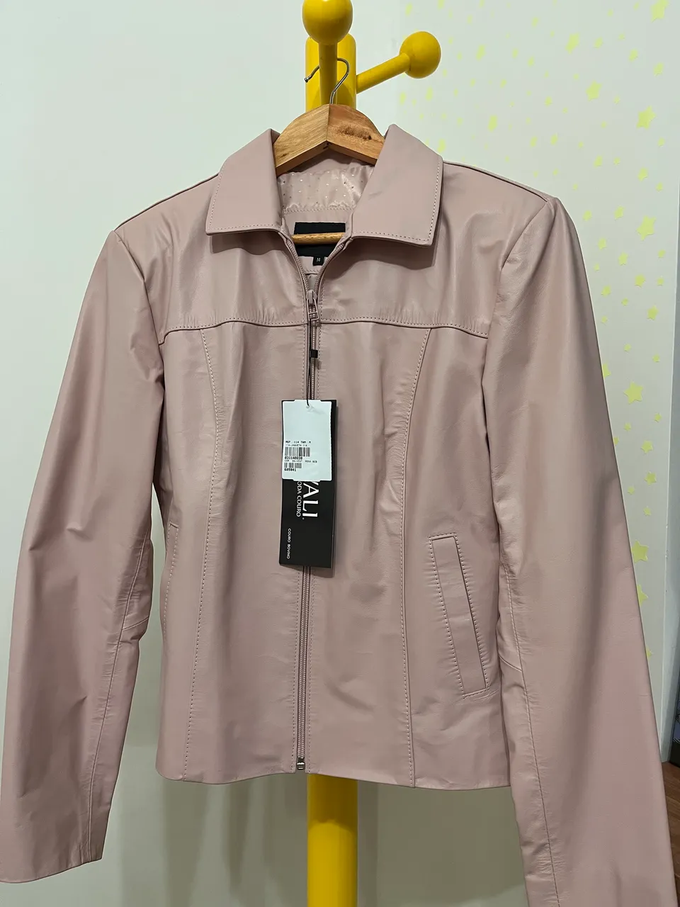Jaqueta de Couro Rosa Pastel