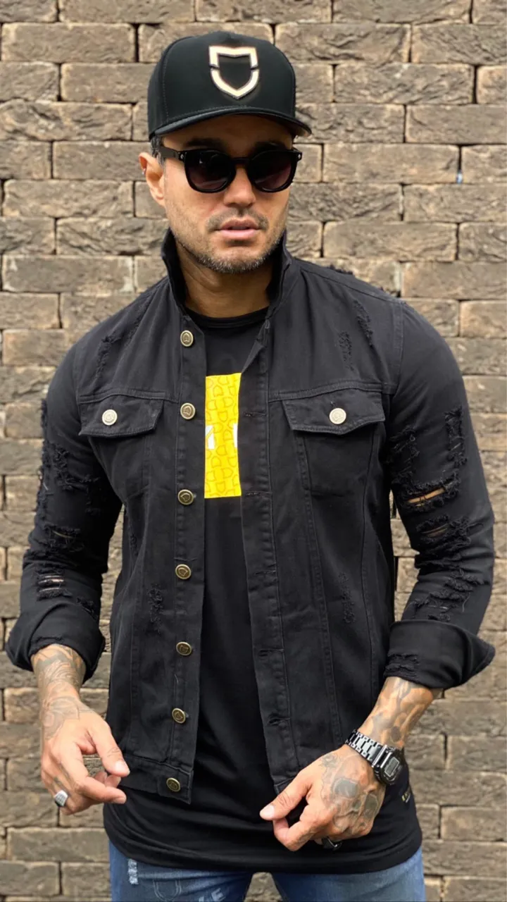 **Venda: Jaqueta Jeans Preta Destroyed - Nova**