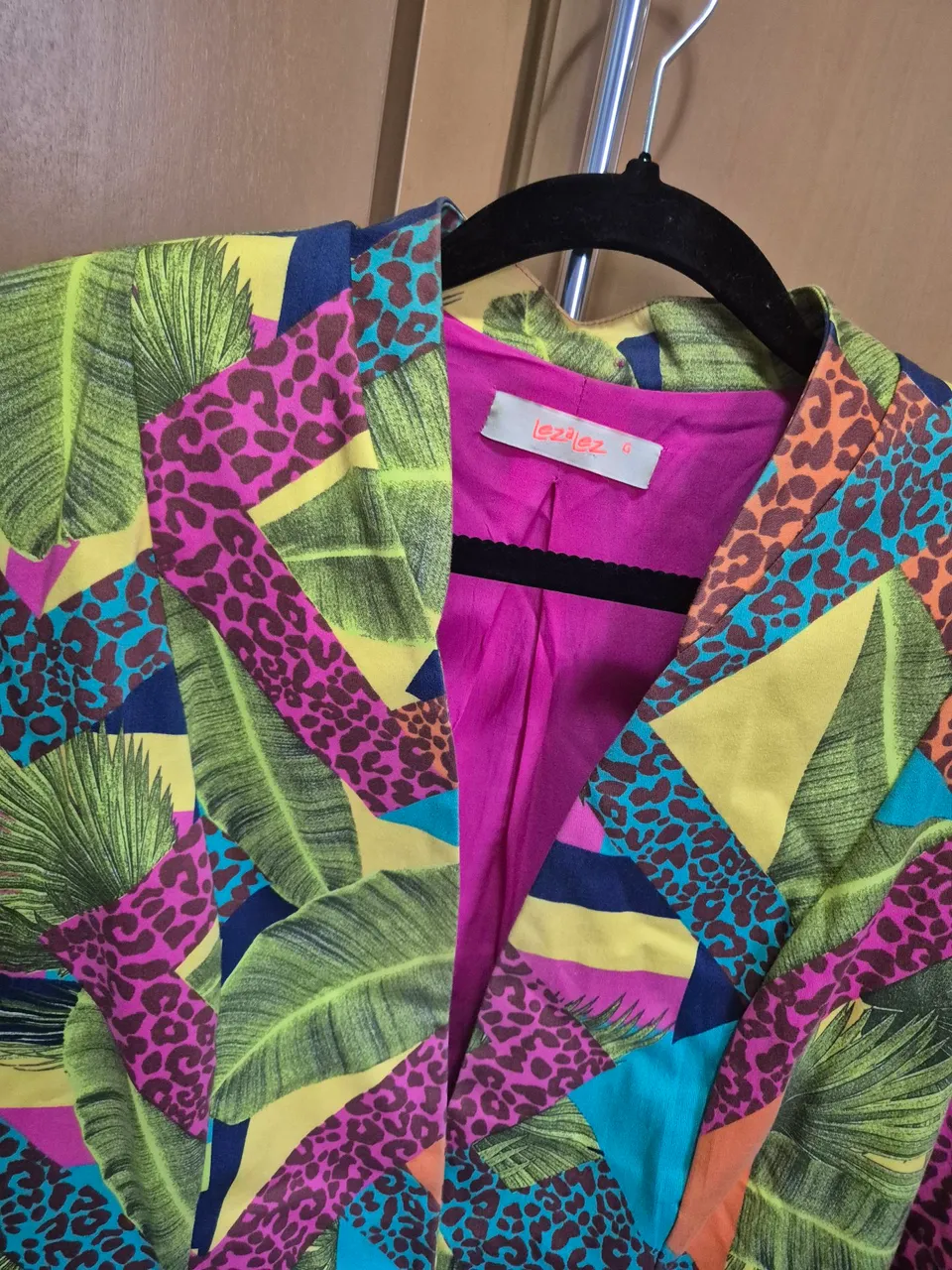 Apresentamos o blazer Lezalez, uma peça que combina estampas vibrantes e design sofisticado. Ideal para quem busca um visual marcante e cheio de personalidade!