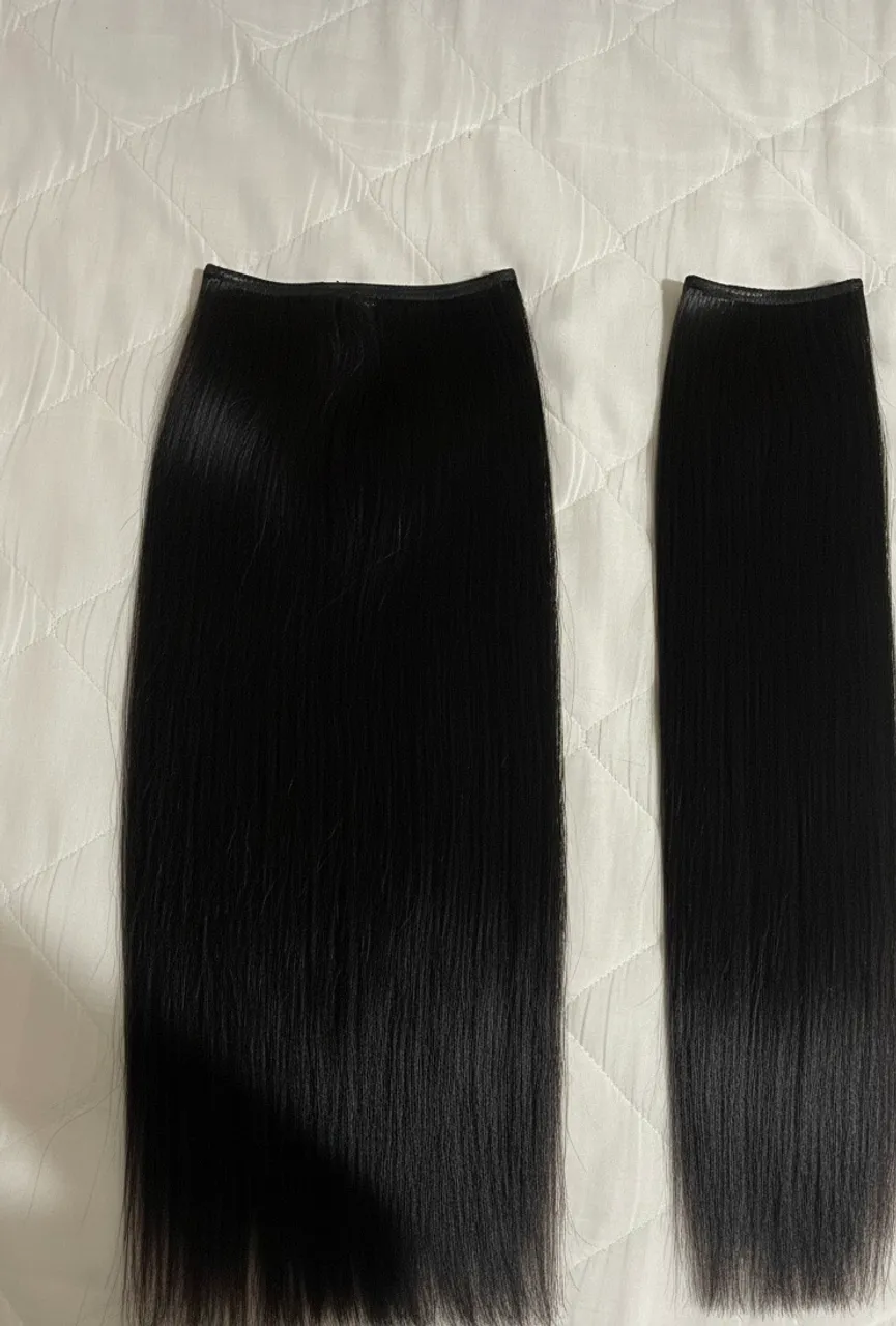 Mega hair cabelo 100% humano, castanho escuro liso, 51cm com duas telas, aproximadamente 80g. Parcelo no cartão
