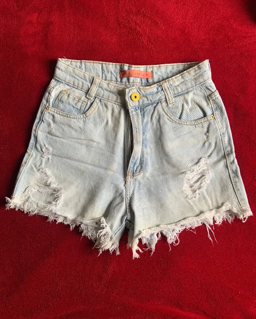 Shorts jeans destroyed, perfeito para compor looks estilosos e despojados. Ideal para quem busca conforto e personalidade.