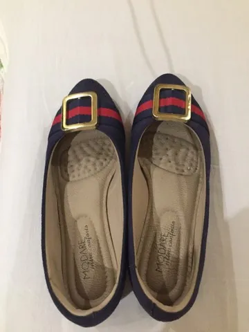 Sandália marca modare, , n. 34, super confortável, cor azul marinho e listras vermelhas, pouco usada.