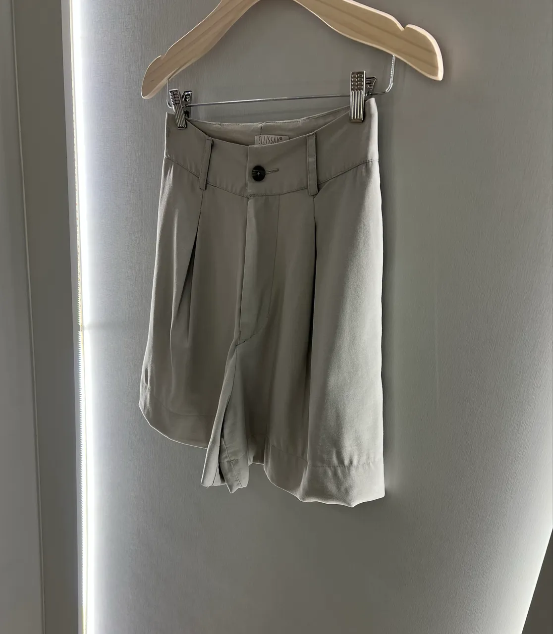 Short em tecido de alfaiataria, cintura alta, cor: cinza, modelagem moderna e elegante. TAM: P veste P/M. Usado apenas 2 vezes, sem marcas de uso, está em ótimo estado.