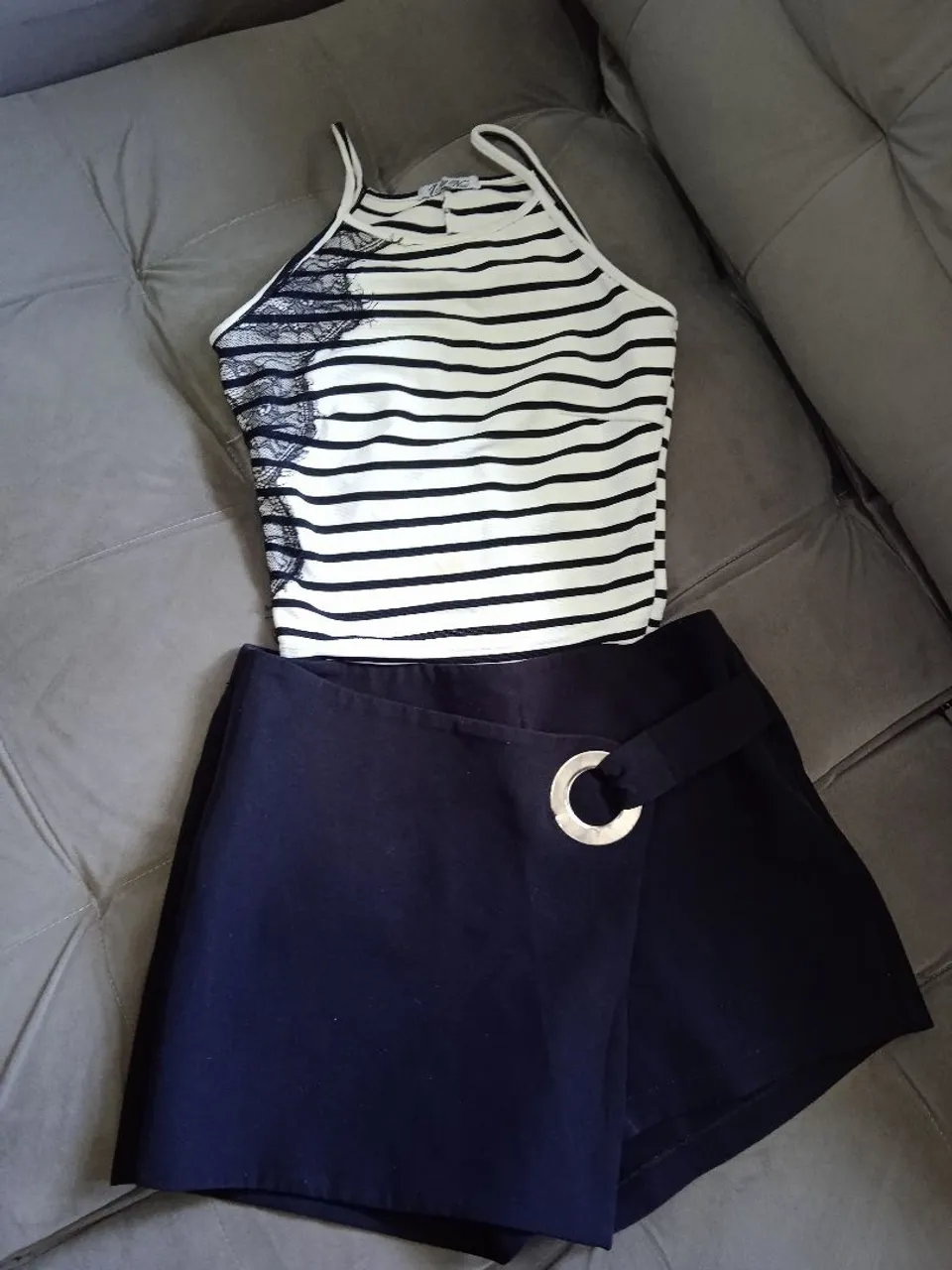 Short saia social t.38 e blusa P/M. As 2 peças por 50,00