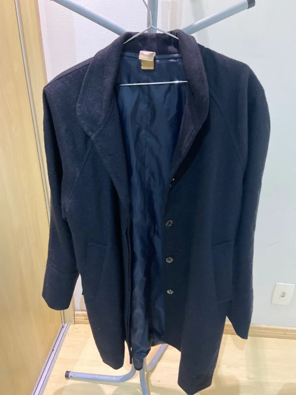 Casaco de lã preto, ideal para o inverno. Design clássico e elegante, com dois bolsos laterais e fechamento por botões. Todo forrado. Ideal para diversas ocasiões.
