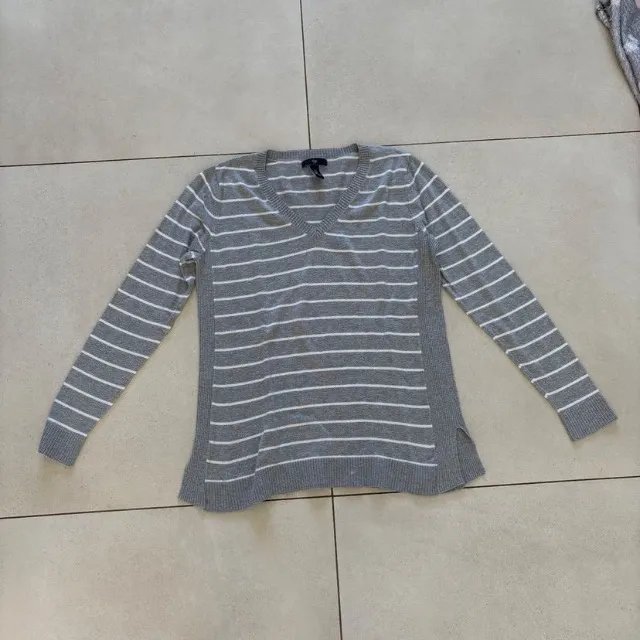 Suéter Gap com gola em V, listrado, perfeito para um visual casual e estiloso. Conforto e elegância em uma única peça. tamanho p